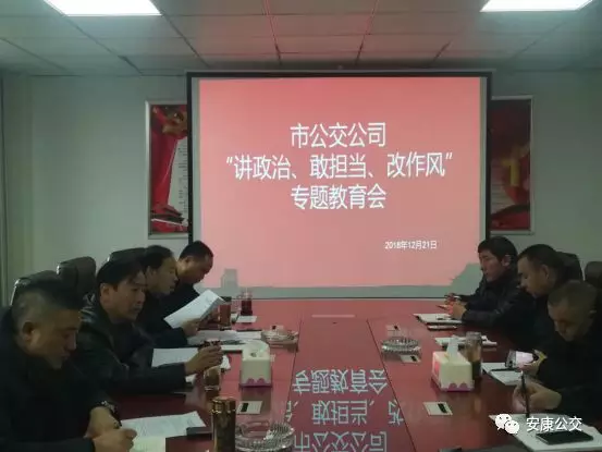 12月24日上午,市公交公司黨委召開“講政治、敢擔(dān)當(dāng)、改作風(fēng)”專題教育會,黨委書記、董事長張曉強主持會議并講話,公司黨政領(lǐng)導(dǎo)班子成員參加會議,中層以上干部列席會議。會議傳達學(xué)習(xí)了市國資委《關(guān)于在全市工信(國資)系統(tǒng)領(lǐng)導(dǎo)干部中開展“講政治、敢擔(dān)當(dāng)、改作風(fēng)”專題教育實施方案》、市紀委《關(guān)于集中開展違規(guī)收送禮金問題專項整治的工作方案》《關(guān)于集中整治形式主義、官僚主義的工作安排》等文件。
